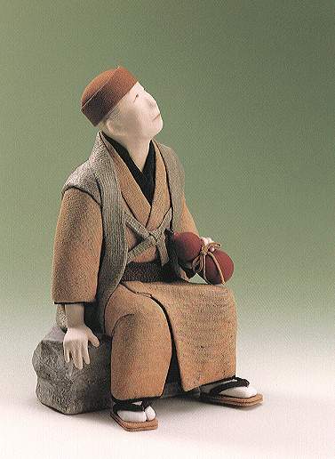An old man took a stoll with a bottle ground for SAKE. He made a pause by sitting on